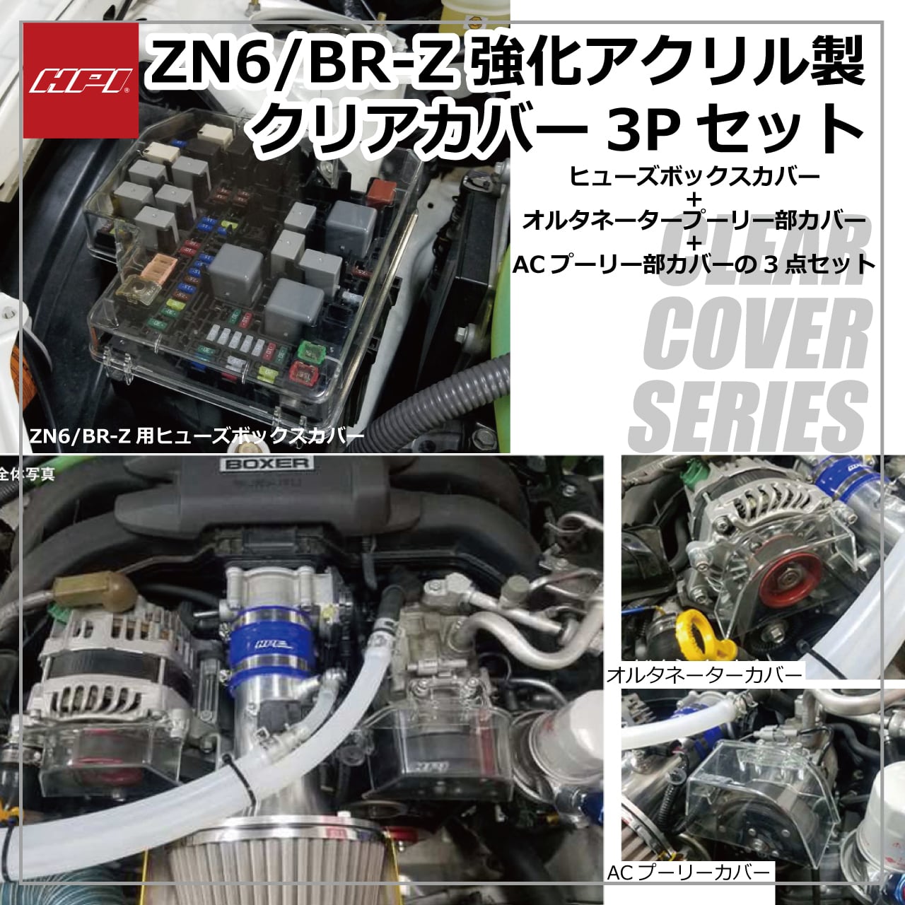 HPFB-ZN6SET:クリアカバー フルセット(ヒューズボックス、オルタネーター、AC) ZN6/ZC6